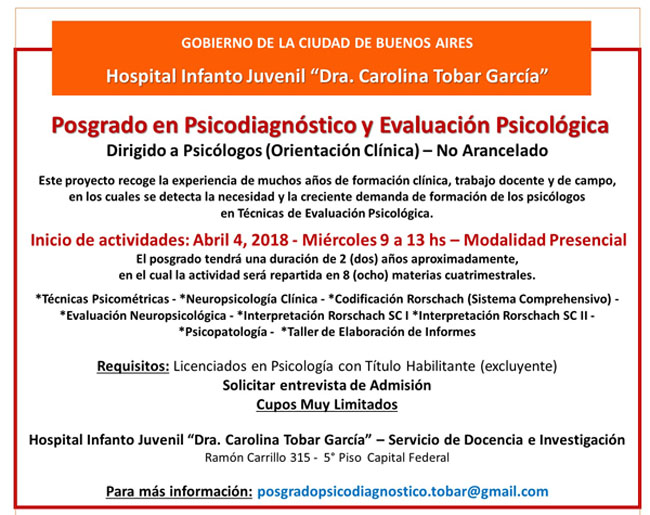 Para más información: posgradopsicodiagnostico.tobar@gmail.com