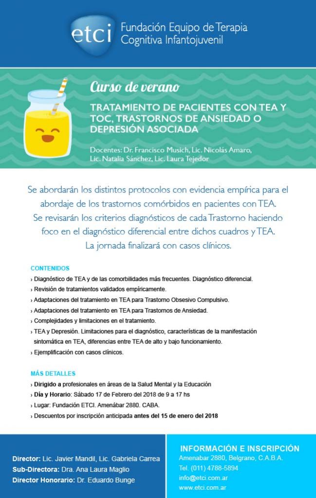 - Adaptaciones del tratamiento en TEA para Trastorno Obsesivo Compulsivo.
