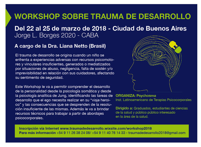 Este Workshop le va permitir comprender el desarrollo de la personalidad desde la psicología somática y desde la psicología analítica de Jung, identificando las tareas de desarrollo que el ego necesita realizar en su “viaje heroico” y las consecuencias que se desprenden de la resolución insuficiente de las mismas. Además brindará recursos técnicos para trabajar a partir de diferentes abordajes psicocorporales.